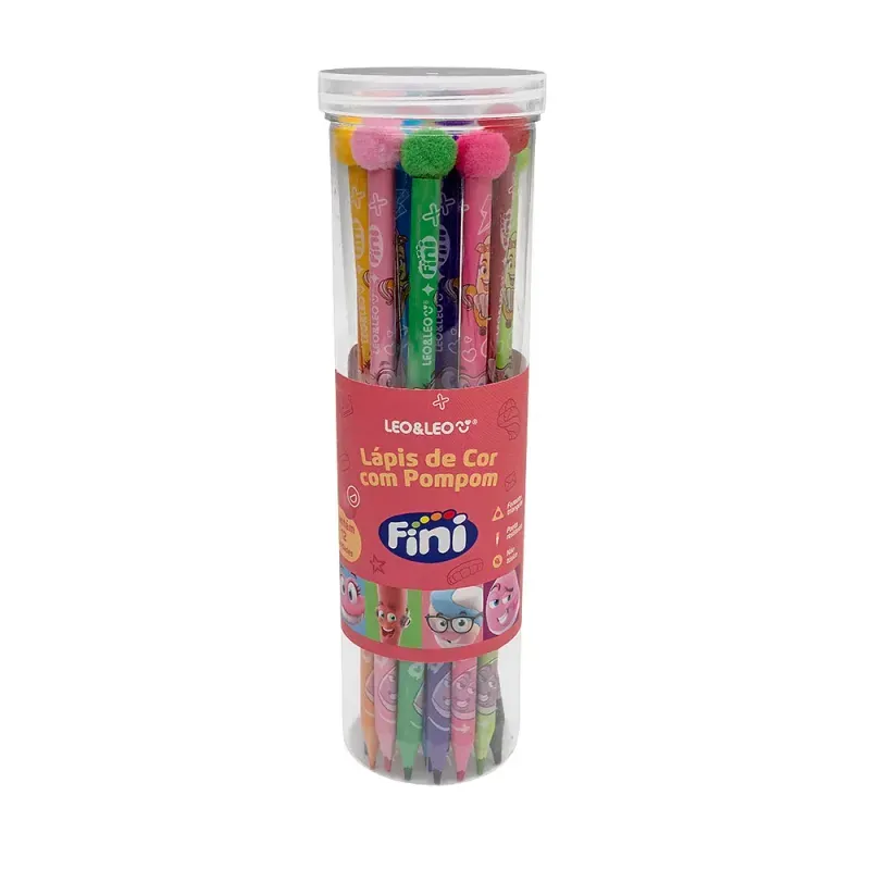 • Lápis de Cor Triangular com Pompom – pote c/12 un.